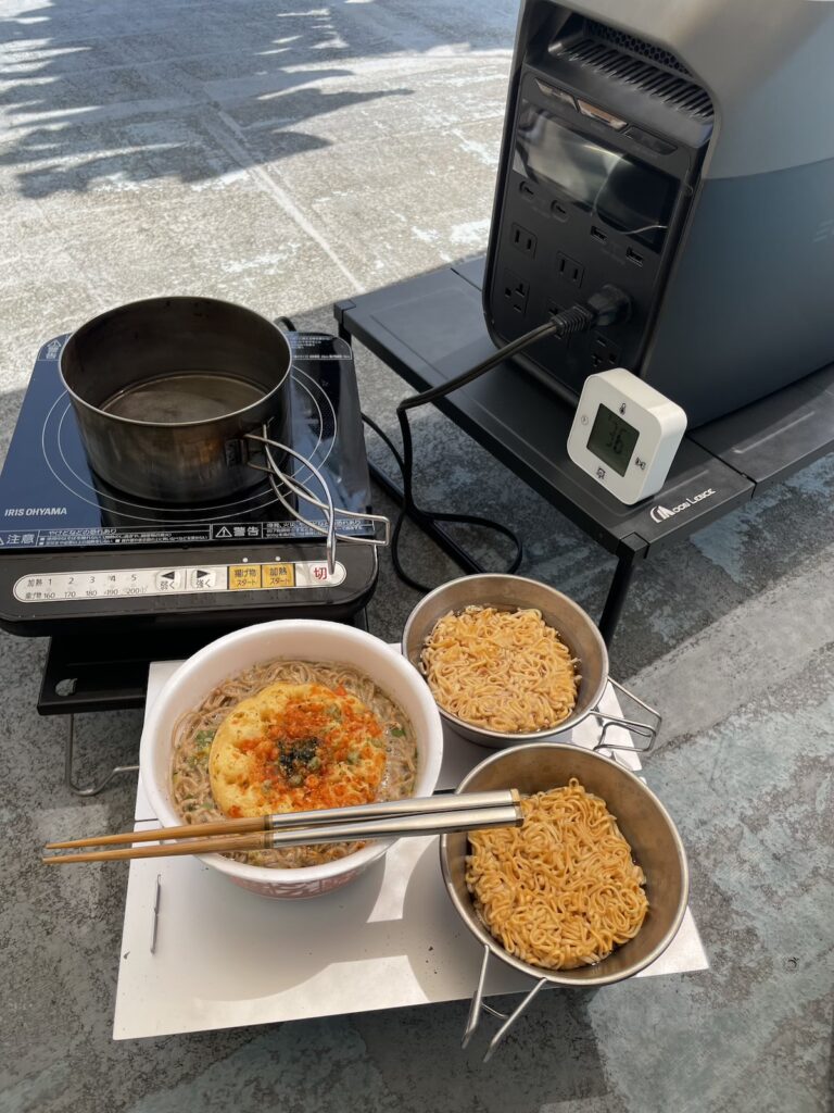 ポータブル電源とIHコンロ、お鍋ひとつあれば、いろいろできます!二郎系ラーメンは大に挑戦する夫、給食は毎日3回おかわりする小学生2人、そしてわたしのお腹がいっぱいになりました。
