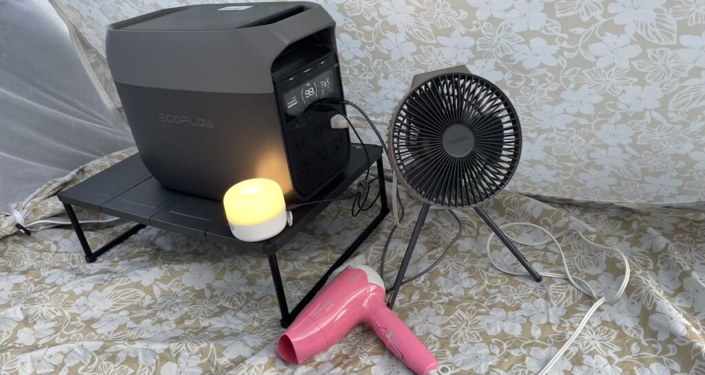 外で実際に使ってみた【EcoFlow DELTA 3】写真でレビュー!ポータブル電源で扇風機・IHコンロ