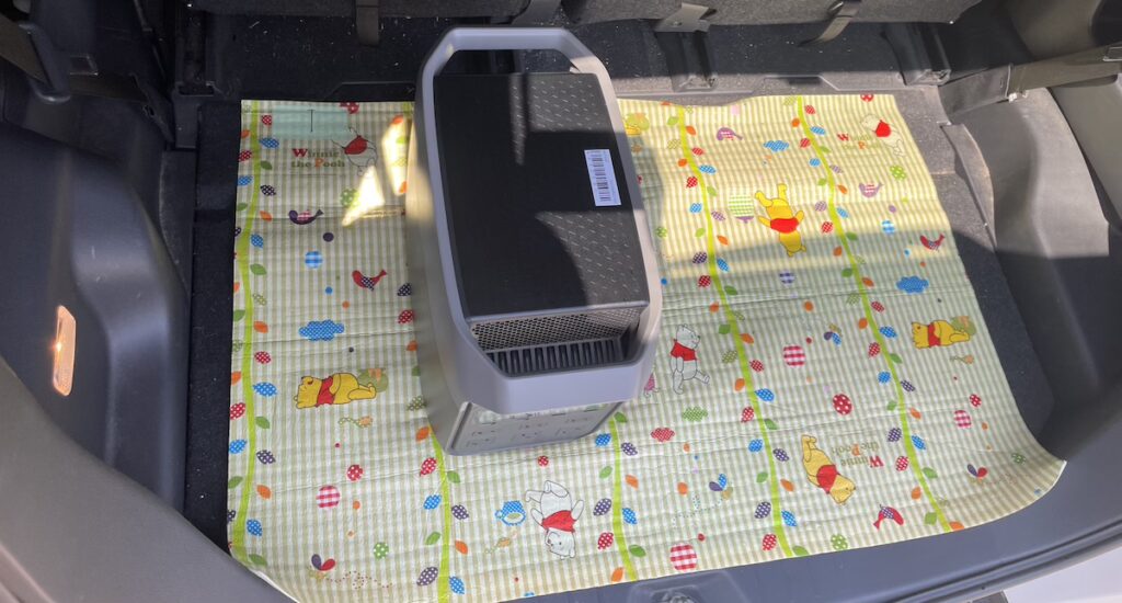 コンパクトカーのトランクにのせると、大きさはこんな感じです。