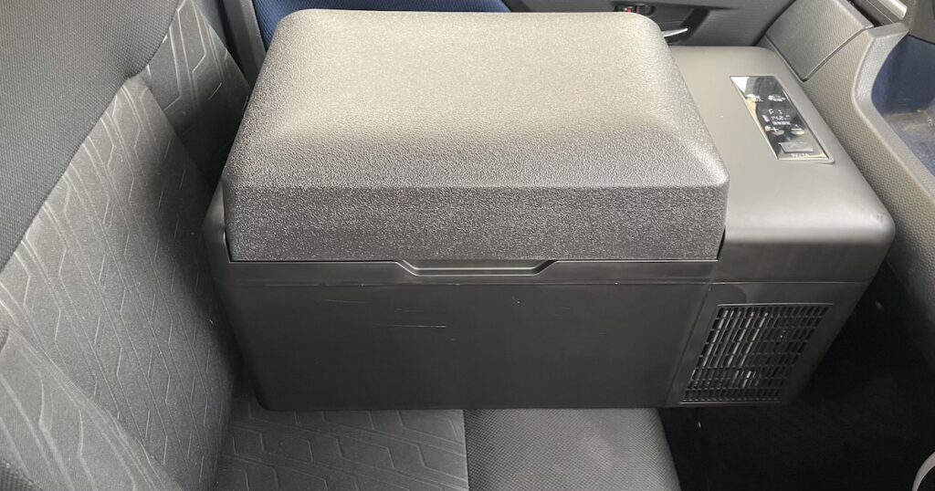 コンプレッサーが動くときは『ブォーン』と音がしますが、車中泊やキャンプの外で使う分にはほとんど気になりません。静かな室内だと少し音が聞こえるかな、という程度です。